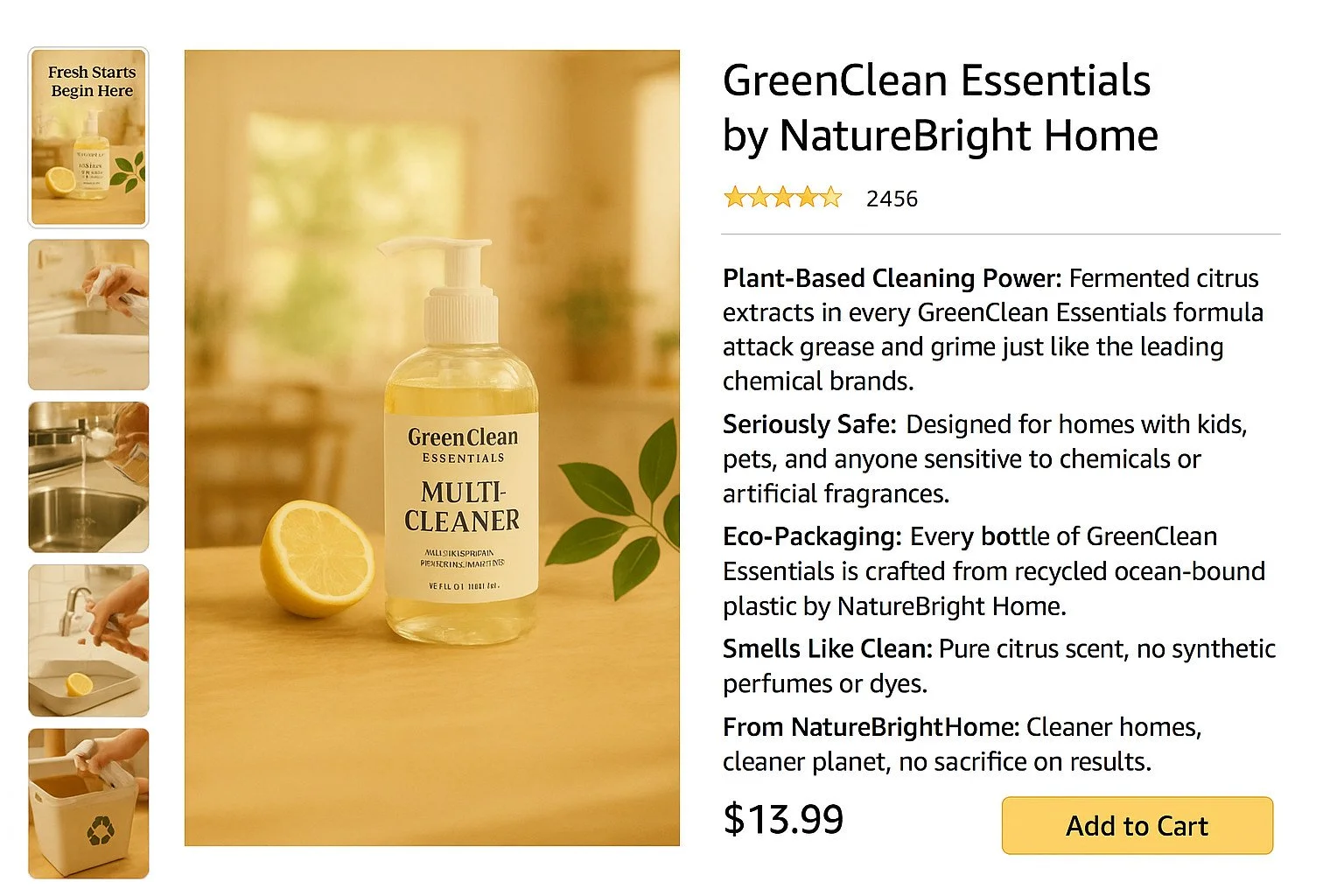 Audience: Environmentally conscious consumers ages 28 to 45 seeking effective and safe home products.